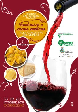 Seconda edizione al via per “Lambrusco e cucina emiliana alla conquista del mondo”, l’iniziativa enogastronomica promossa dalla Confesercenti reggiana, in collaborazione con il Comune di Correggio e Cantine Riunite/Civ, che si svolge a Correggio da venerdì 18 a domenica 20 ottobre, in concomitanza con la fiera “Correggio in autunno”.