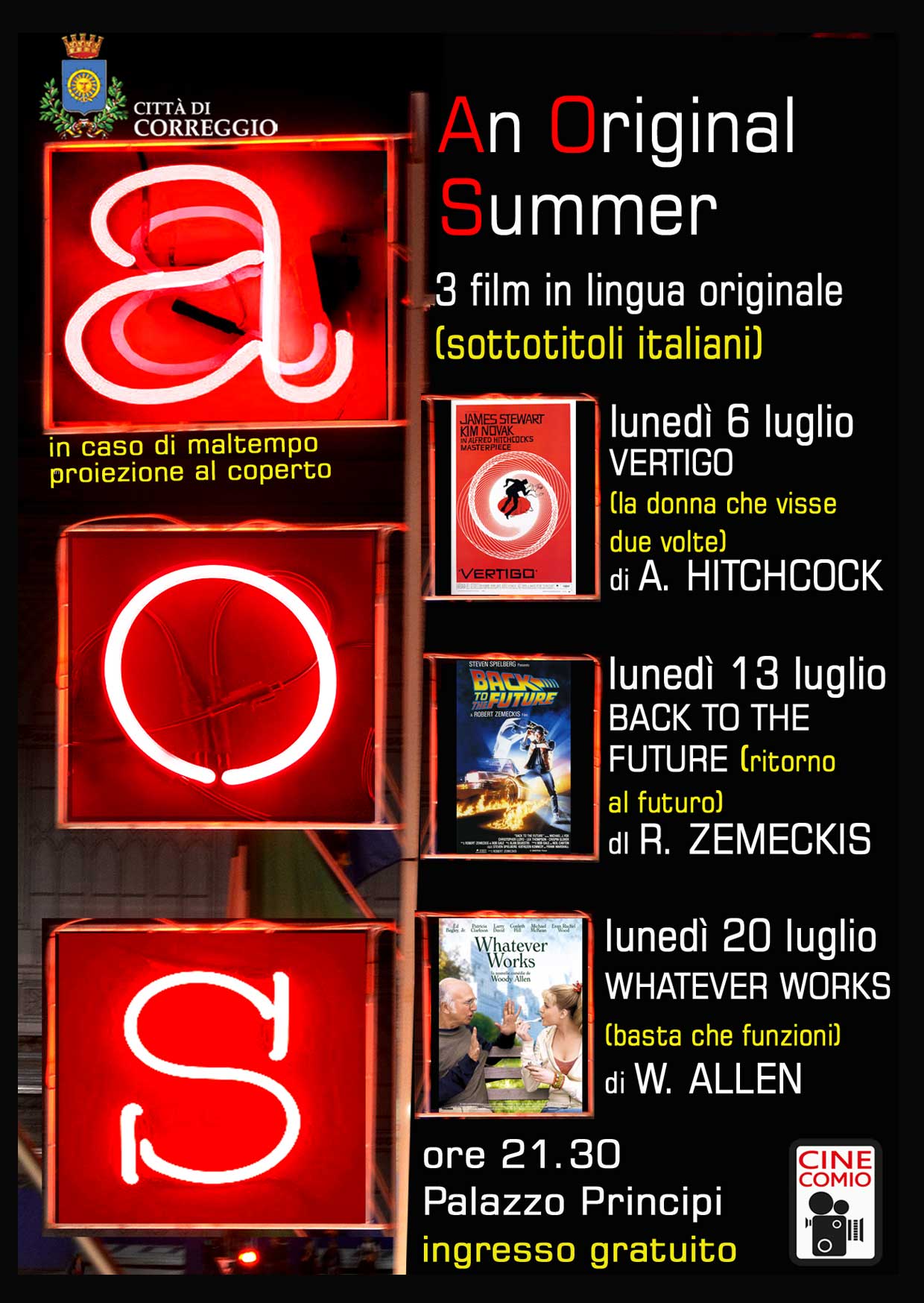 Lunedì 6 luglio ritorna a Correggio “An original summer”, il ciclo di film in lingua originale e sottotitolati in italiano, promosso dal Comune di Correggio in collaborazione con l’associazione Cinecomio, che negli anni si è affermato come uno degli appuntamenti più seguiti da spettatori e appassionati.