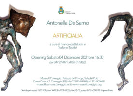 Nella Sala dei Putti del Palazzo dei Principi di Correggio sarà allestita, dal 4 dicembre 2021 al 2 gennaio 2022, “Artificialia”, mostra personale dell’attrice-performer e artista visiva Antonella De Sarno, nata in provincia di Modena ma da anni residente in Francia. Curata da Francesca Baboni e Stefano Taddei, l’esposizione sarà inaugurata sabato 4 dicembre alle ore 16.30. Saranno presenti al vernissage gli utenti e gli operatori delle associazioni di Correggio che assistono persone con disabilità fisica e cognitiva per celebrare anche attraverso l’arte la Giornata internazionale delle persone con disabilità.