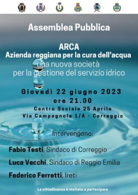 Azienda Reggiana per la cura dell’acqua, una nuova società per la gestione del servizio idrico integrato nel bacino territoriale di Reggio Emilia.