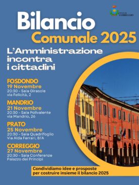 Gli appuntamenti sul Bilancio Comunale 2025 sono martedì 19 novembre a Fosdondo, giovedì 21 novembre a Mandrio, lunedì 25 novembre a Prato e, infine, mercoledì 27 novembre a Palazzo Principi, alle ore 20.30.