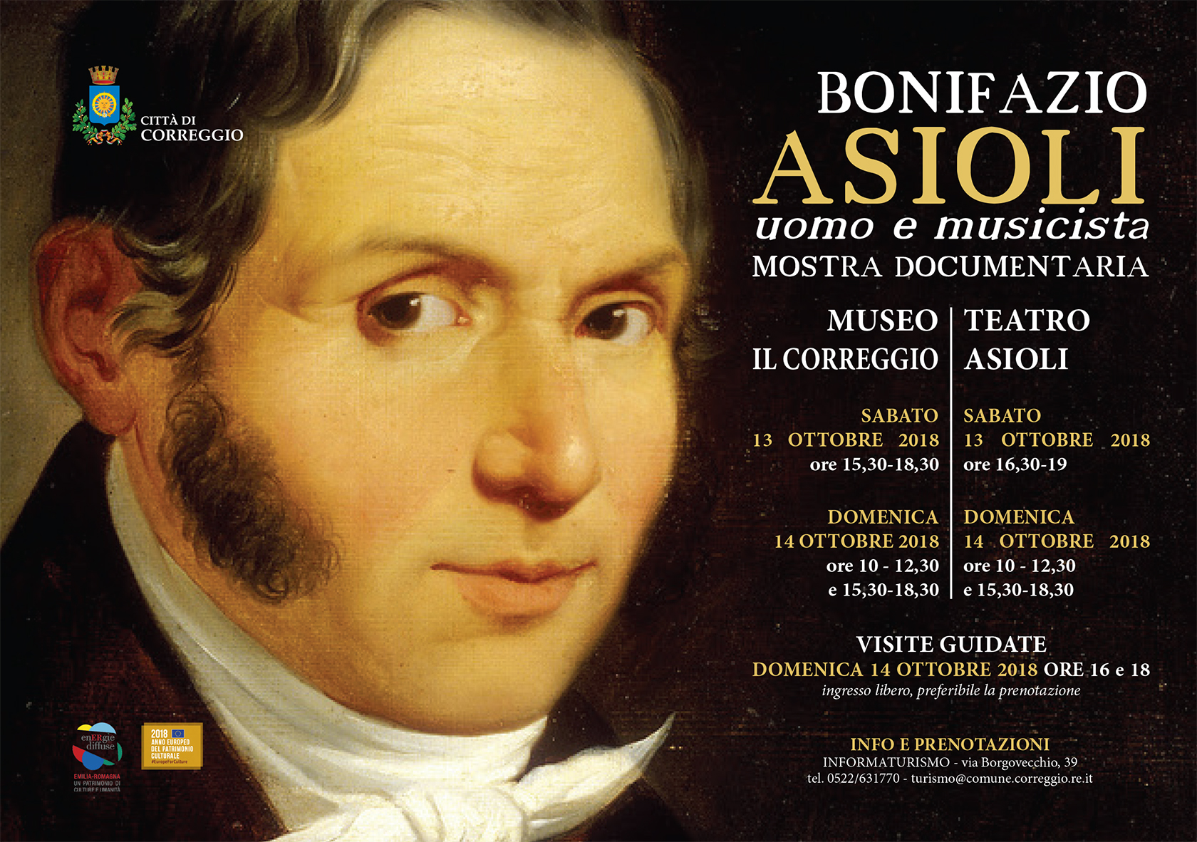 È “Bonifazio Asioli, uomo e musicista” il titolo dell’iniziativa con la quale il Comune di Correggio aderisce agli Open Day dell’IBC Emilia-Romagna, una due giorni – sabato 13 e domenica 14 ottobre – dedicata alle istituzioni culturali, ai musei, alle biblioteche e agli archivi presenti e attivi sul territorio regionale con cui la Regione Emilia-Romagna celebra l’Anno Europeo del Patrimonio Culturale 2018.
