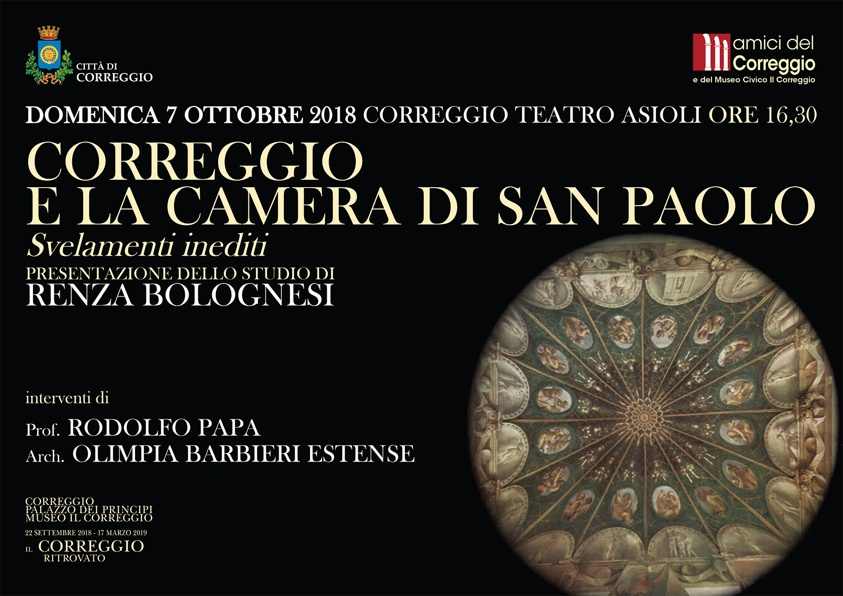 “Correggio e la Camera di San Paolo: svelamenti inediti”: domenica 7 ottobre a Correggio presentato il saggio di Renza Bolgnesi, prezioso studio nel quinto centenario della realizzazione del capolavoro del Correggio.