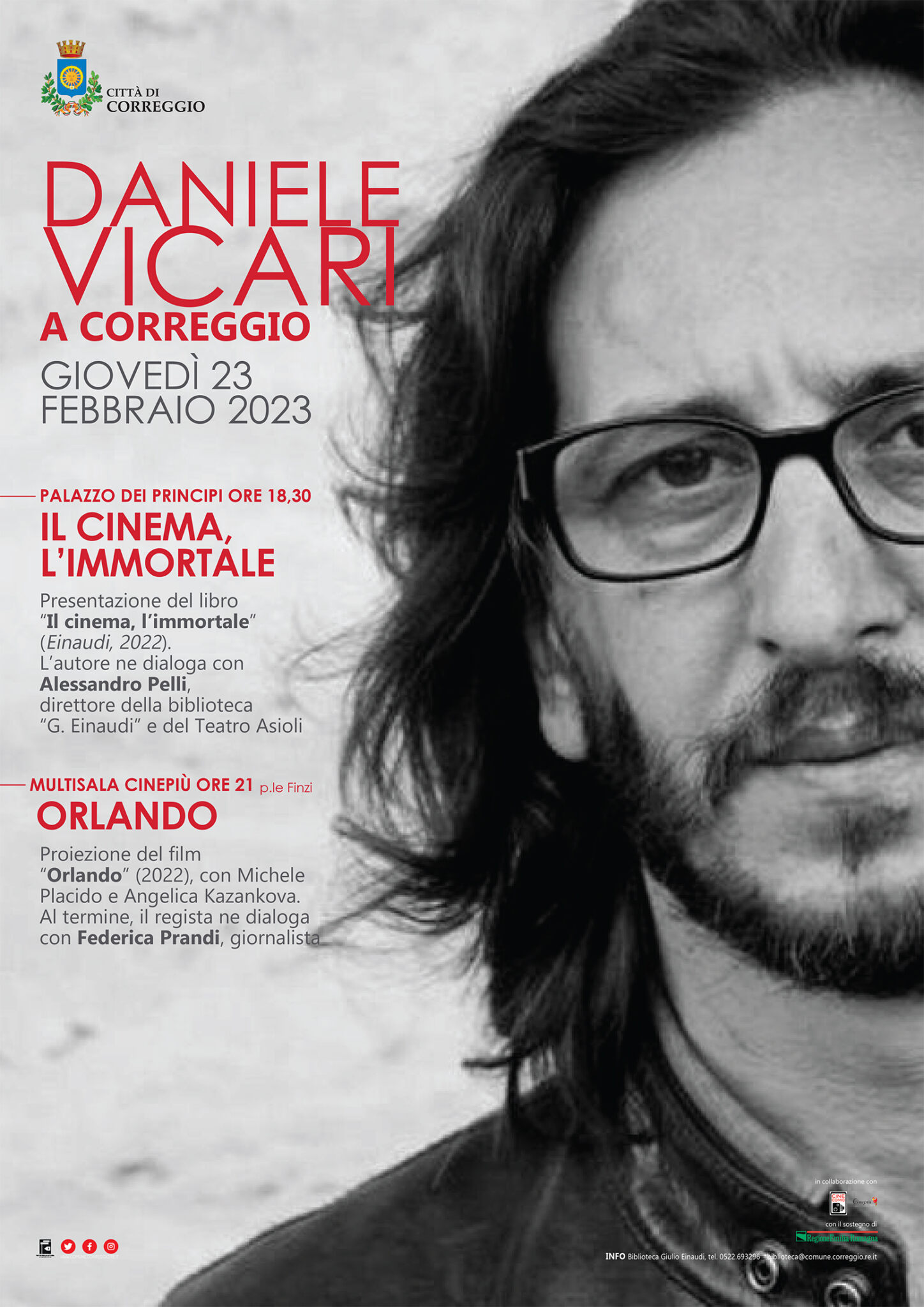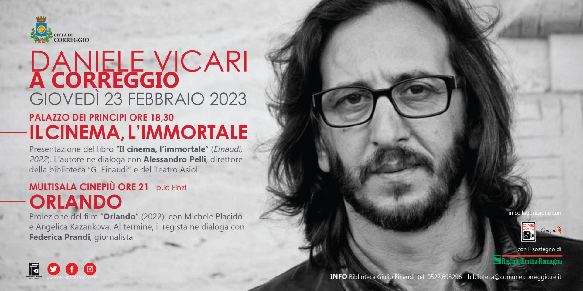 Giovedì 23 febbraio, il regista Daniele Vicari è ospite e protagonista di due appuntamenti a Correggio: alle ore 18,30, a Palazzo dei Principi, insieme al direttore della biblioteca comunale “Giulio Einaudi”, Alessandro Pelli, presenta il libro “Il cinema, l’immortale” (Einaudi, 2022).