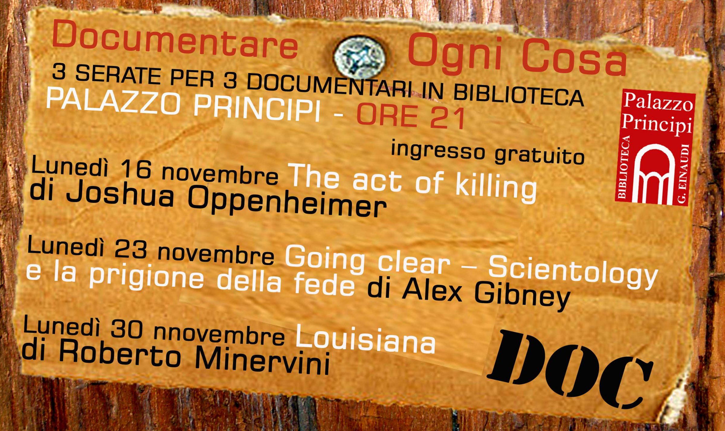 Si comincia lunedì 16 novembre con “The act of killing” di Joshua Oppenheimer; lunedì 23 novembre, sarà la volta del docu di Alex Gibney, “Going clear – Scientology e la prigione della fede”; lunedì 30 novembre, infine, “Louisiana”, di Roberto Minervini.