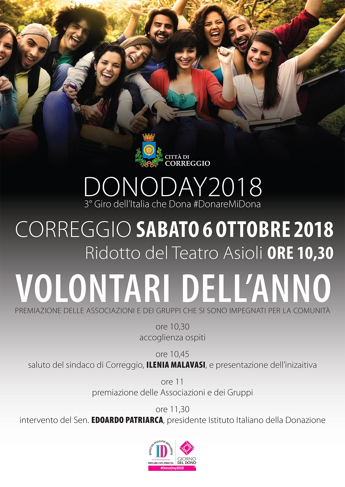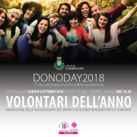 #DonoDay2018: sabato 6 ottobre il “Giorno del Dono” a Correggio con la premiazione dei “Volontari dell’anno”