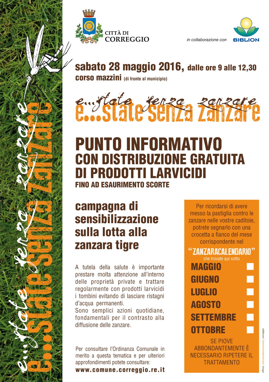 “E… state senza zanzare” è il titolo della campagna di sensibilizzazione sulla lotta alla zanzara tigre promossa dal Comune di Correggio, in collaborazione con Biblion.