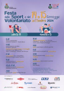 Quest’anno, per la seconda volta dopo l’esordio dell’anno scorso, la festa dello sport è anche festa del volontariato: “Abbiamo pensato di unire questi due mondi – ha dichiarato il vice sindaco e assessore al welfare e coesione sociale Maria Chiara Oleari – che vanno già a braccetto nella realtà: moltissime persone impegnate nelle società sportive lavorano su base di puro volontariato, cedendo il loro tempo, le loro capacità e le loro energie in maniera totalmente gratuita. Portiamo al centro della manifestazione una realtà importante come quella del volontariato che a Correggio coinvolge tante associazioni. Una realtà della quale a volte non ci accorgiamo fino a che non ne abbiamo bisogno, ma che merita di essere valorizzata e conosciuta. Sono davvero tanti i correggesi che si spendono per gli altri nei contesti più disparati: per ambiente, malati, disabili, poveri. Con il passaporto dello sportivo intendiamo stimolare la partecipazione, una interazione con i volontari delle associazioni e delle società sportive. Siamo certi che sarà un weekend piacevole per le famiglie, e per scoprire le realtà del territorio che arricchiscono la nostra comunità mettendosi a disposizione degli altri. Chi ha tempo e voglia di mettersi a disposizione degli altri venga a conoscere le associazioni – ha concluso Oleari – e troverà sicuramente quella più adatta alle proprie attitudini e sensibilità”.