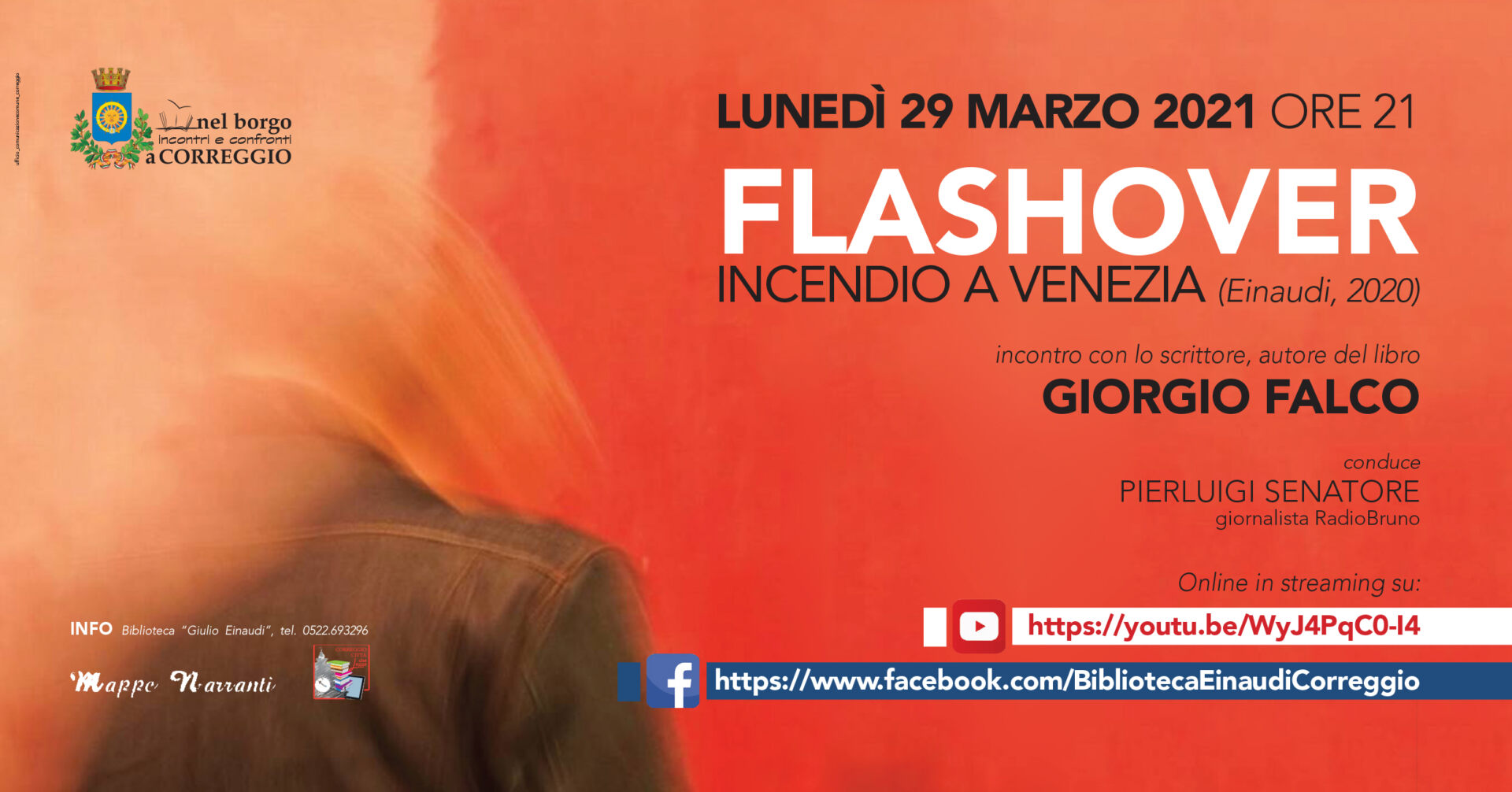 Nuovo appuntamento – lunedì 29 marzo, ore 21 – per la rassegna “NelBorgo – Incontri e confronti a Correggio”: come sempre intervistato da Pierluigi Senatore, sarà infatti ospite Giorgio Falco, scrittore, autore del libro “Flashover – Incendio a Venezia” (Einaudi, 2020).