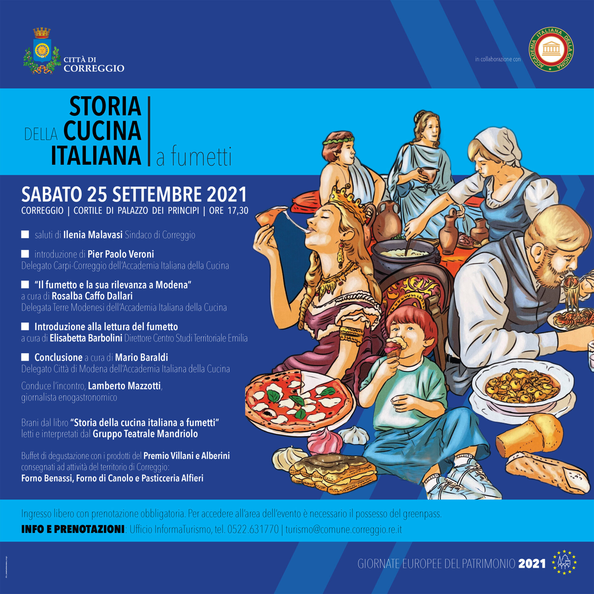 Il Comune di Correggio ha aderito anche quest’anno alle “Giornate Europee del Patrimonio” promuovendo – sabato 25 settembre, cortile di Palazzo dei Principi ore 17,30 – in collaborazione con l’Accademia Italiana della Cucina, la presentazione del libro “Storia della cucina italiana a fumetti”.