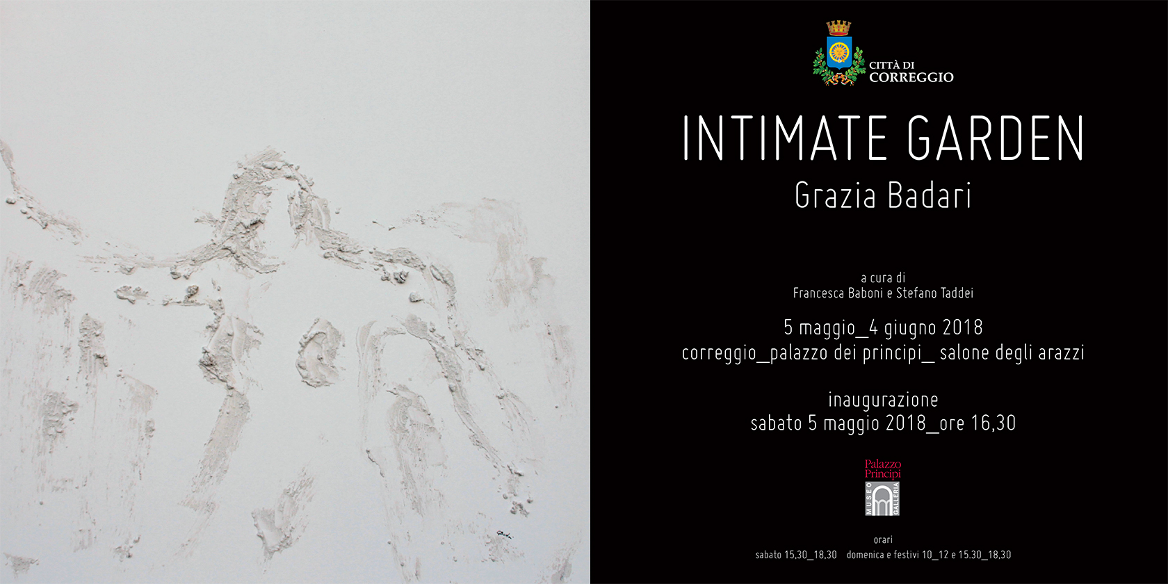 Inaugura sabato 5 maggio, alle ore 16,30, “Intimate Garden”, la mostra di Grazia Badari, curata da Francesca Baboni e Stefano Taddei, allestita a Correggio nel Salone degli Arazzi di Palazzo dei Principi.