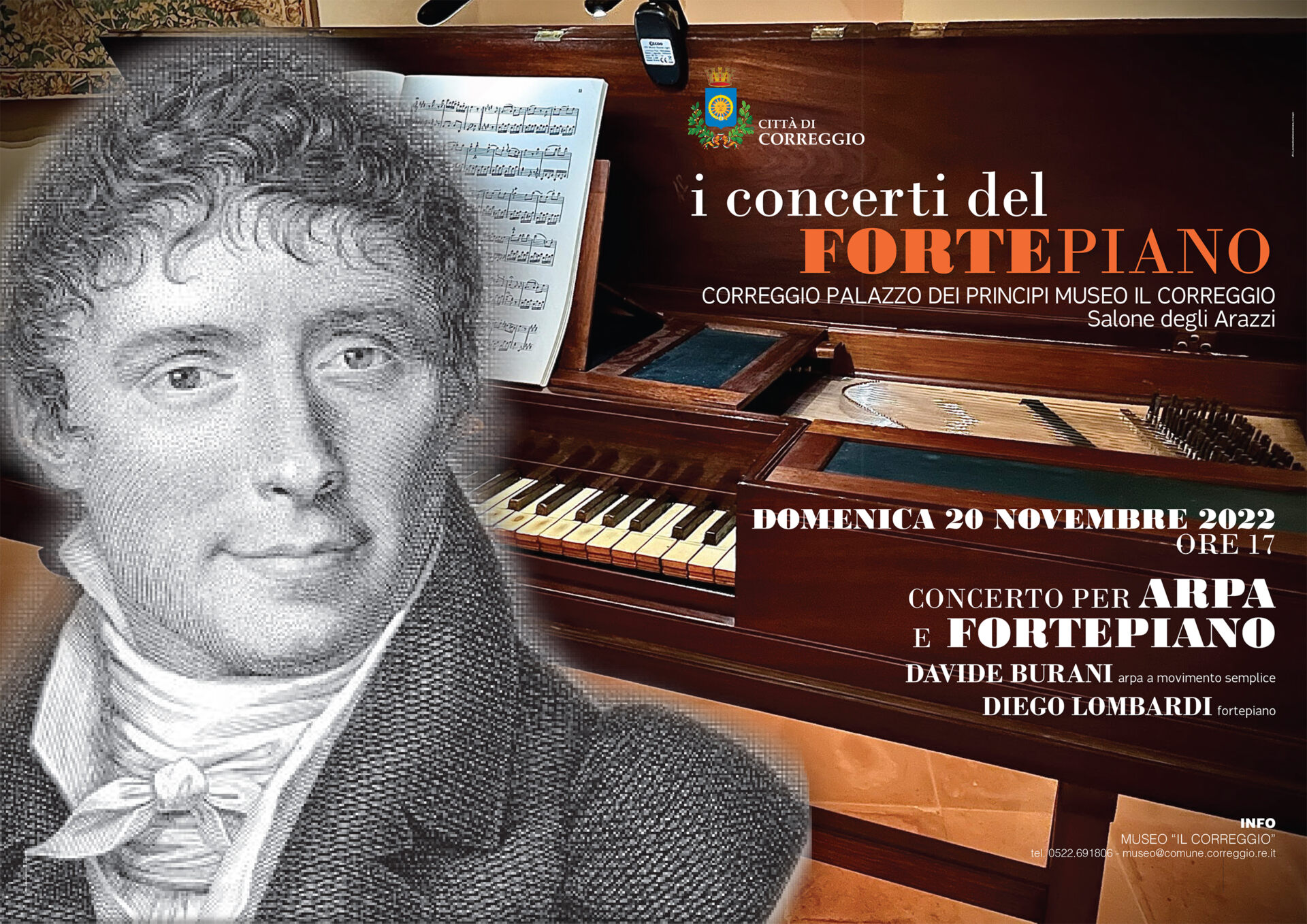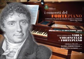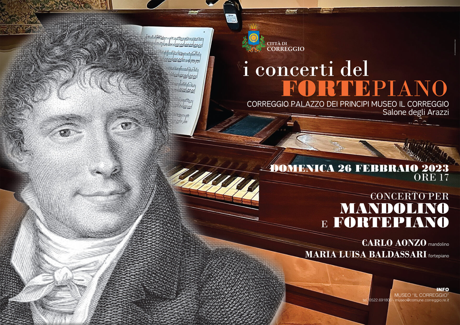 Il prossimo appuntamento è per domenica 26 febbraio 2023, quando, alle ore 17, nel Salone degli Arazzi del Museo Il Correggio, a Palazzo dei Principi, Carlo Aonzo al mandolino e Maria Luisa Baldassari al fortepiano, propongono un concerto per mandolino e fortepiano.