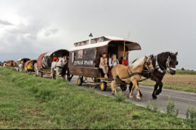 François e la sua carovana di artisti arrivano a Correggio portando la straordinaria carica di libertà, passione, poesia e divertimento del loro circo. Da sempre attento alla relazione con le persone e con l’ambiente, il Cirque Bidon ha fatto della vita a contatto con la natura, della mobilità dolce e dell’arte come fatto comunitario la propria filosofia e pratica artistica: straordinario e concreto esempio di questo approccio sono le splendide carrozze in legno – costruite a mano e trainate da cavalli bretoni accuditi come figli – che diventano alloggio per artisti e tecnici e scenografia per lo spettacolo.
