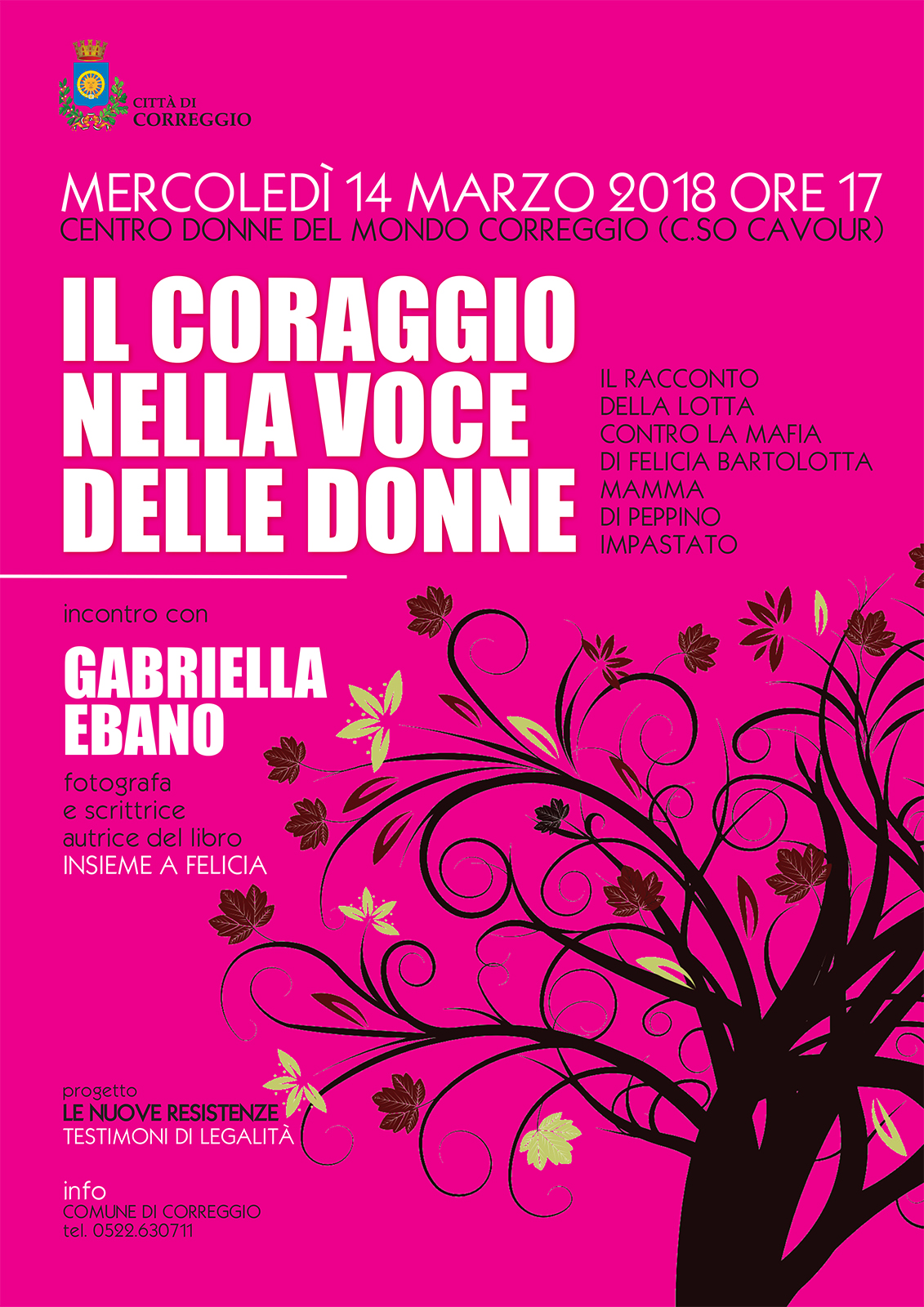 “L’iniziativa rientra nel progetto ‘Le nuove Resistenze/Testimoni di legalità’, una serie di incontri, sia pubblici che rivolti alle scuole, che stiamo proponendo fin dall’inizio del nostro mandato, in cui il tema della legalità viene approfondito attraverso le testimonianze dirette di protagonisti che, tramite le loro scelte, hanno contribuito attivamente alla lotta alla criminalità organizzata”, commenta il sindaco di Correggio, Ilenia Malavasi. “In questa occasione, inoltre, l’incontro intende ricordare a Correggio la Giornata internazionale della donna attraverso le parole di un’autrice e fotografa che racconta di un’altra donna straordinaria, Felicia Bartolotta, e della sua lotta contro la mafia, condotta spesso in modo solitario e incompreso, nel nome del figlio, Peppino Impastato”.