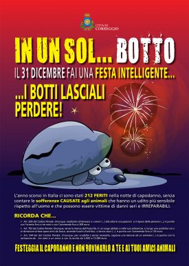 “In questi anni non abbiamo seguito il modello dell’emanazione di divieti o ordinanze, perché abbiamo preferito investire risorse in una campagna di comunicazione e sensibilizzazione sullo sviluppo del senso civico”, commenta il sindaco di Correggio, Ilenia Malavasi. “Negli ultimi anni, fortunatamente, si registrata una lenta diminuzione del numero dei feriti nella notte di Capodanno e questo è un segnale positivo, perché testimonia l’efficacia del lavoro svolto per educare alla legalità e al rispetto delle persone e degli animali. La nostra Polizia Municipale, in ogni caso, il 31 dicembre sarà attiva fino a tarda notte, impegnata nel controllo del territorio”.