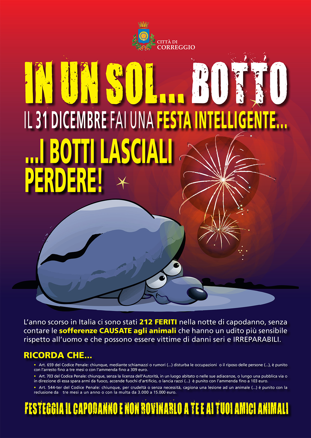 Ritorna, in prossimità delle feste, “In un sol botto”, la campagna di informazione e sensibilizzazione relativa ai botti di Capodanno, che negli ultimi anni è stata promossa dall’amministrazione comunale di Correggio.