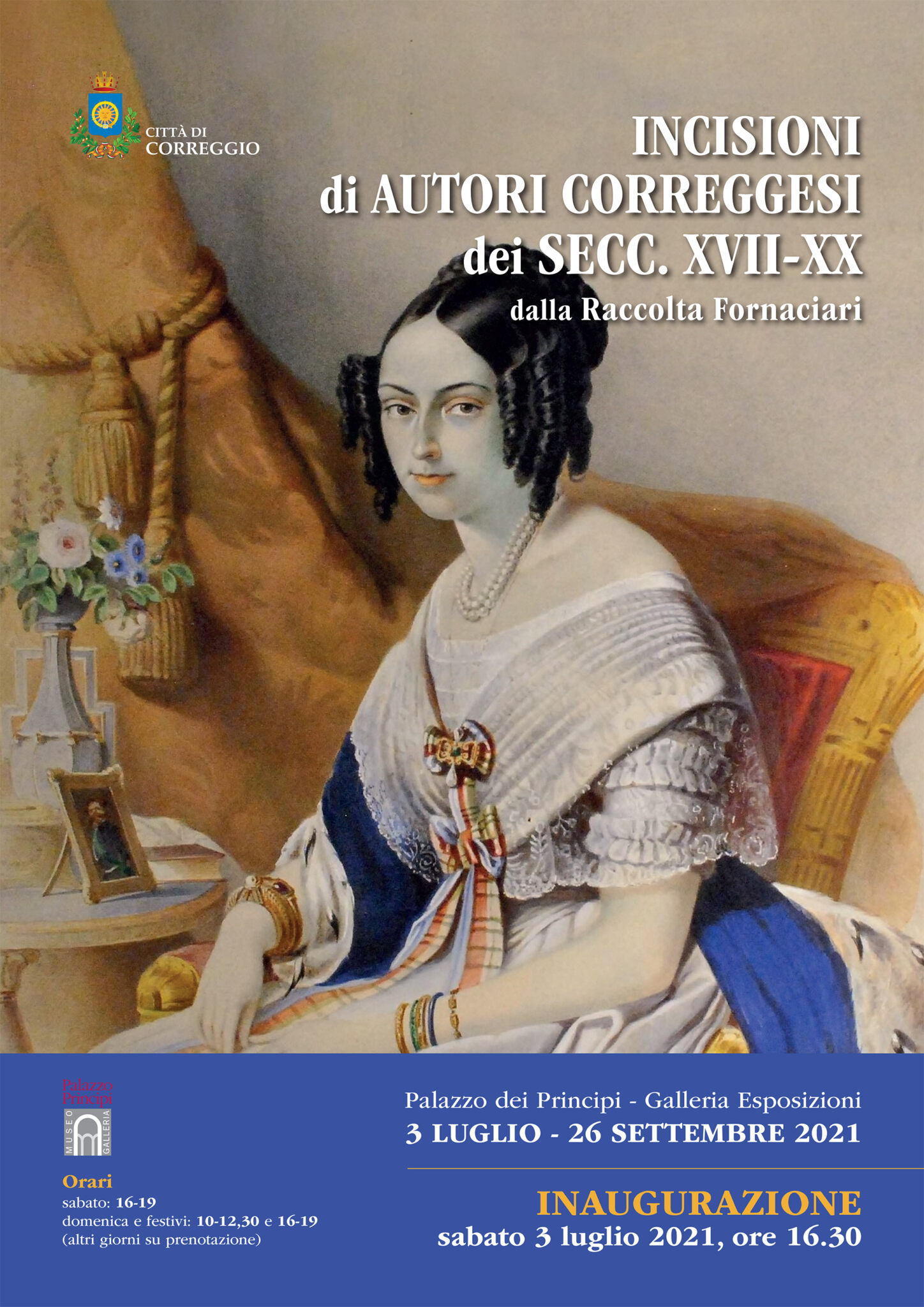 Inaugura sabato 3 luglio, alle ore 16,30, “Incisioni di autori correggesi dei secoli XVII-XX”, mostra allestita a Correggio, nella Galleria Espositiva del Museo Il Correggio, a Palazzo dei Principi, con opere provenienti dalla Raccolta Fornaciari.