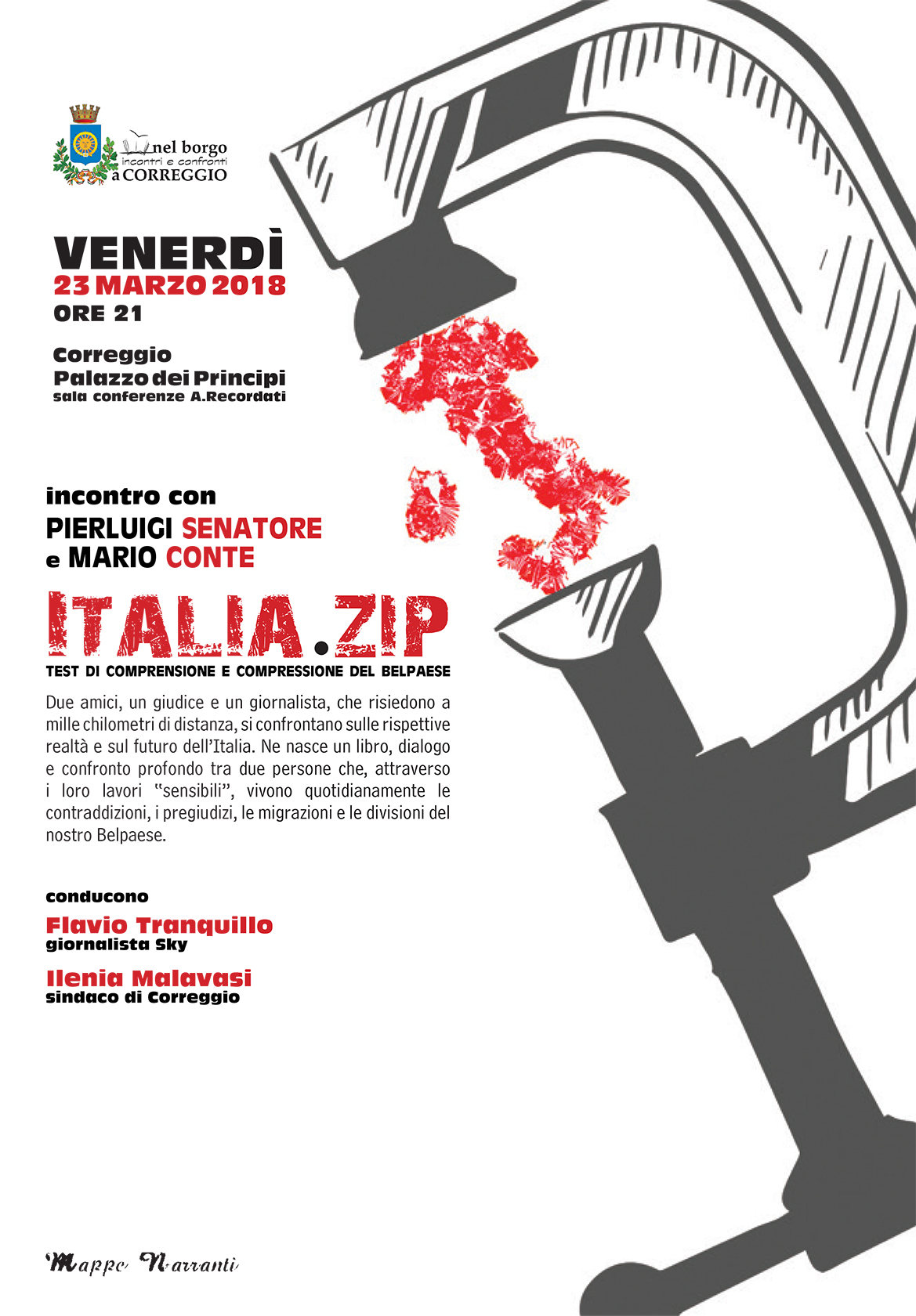 “Italia.zip”: Pierluigi Senatore e Mario Conte in un “test di comprensione e compressione del Belpaese”. Venerdì 23 marzo, ore 21, a Correggio.