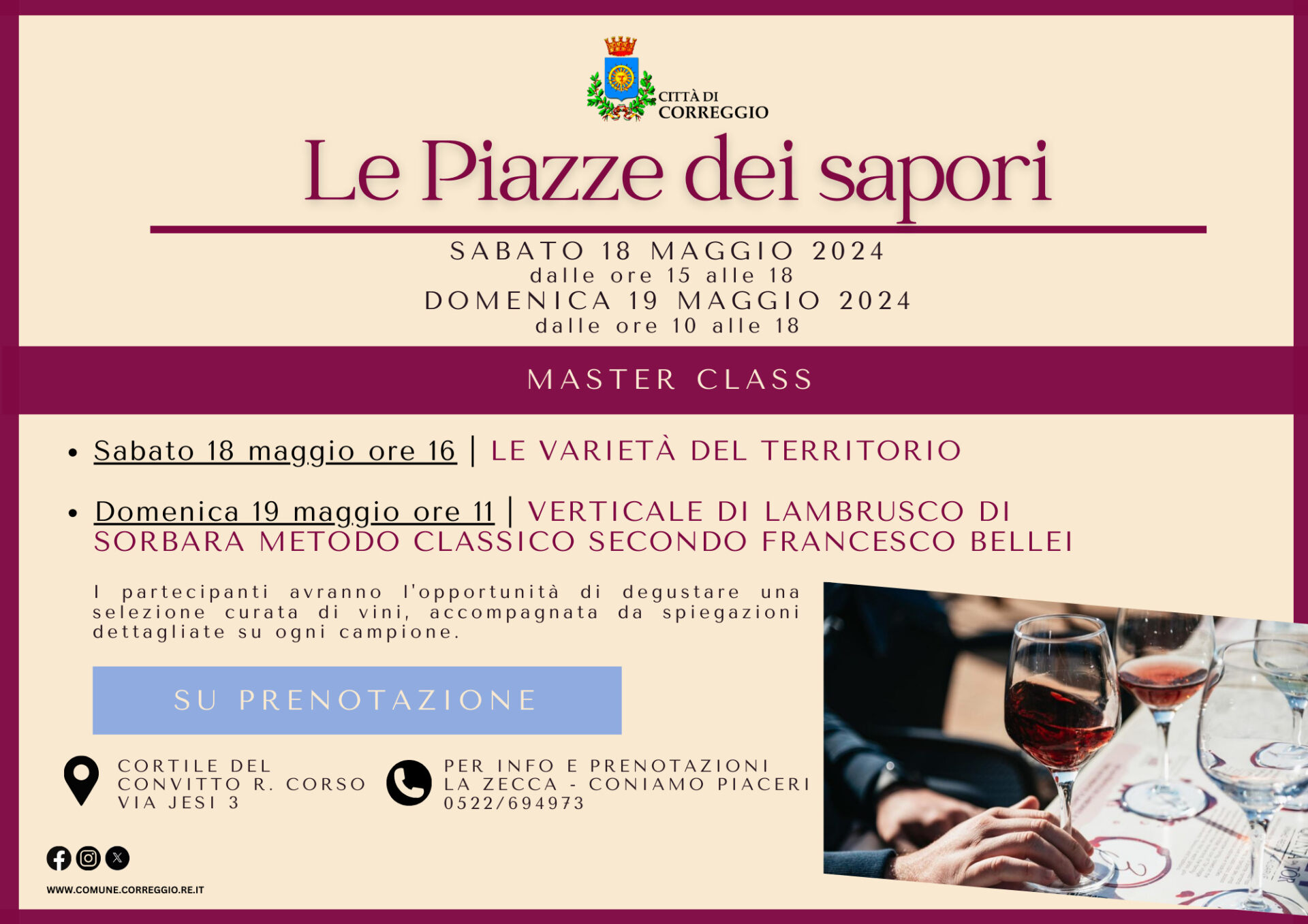 Le Piazze dei sapori“, la nuova festa creata per valorizzare prodotti locali come il Lambrusco, il Parmigiano Reggiano, lo scarpasòt, l’aceto balsamico, il nocino e tanti altri che rendono la nostra terra un’eccellenza nel panorama enogastronomico. Gli stand di tante aziende locali animeranno le piazze del centro storico nelle giornate di sabato 18 e domenica 19 maggio per far conoscere i loro prodotti.