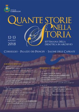 “Quante storie nella storia” è il titolo della “Settimana della didattica in Archivio”, l’appuntamento annuale promosso dalla Regione Emilia-Romagna che costituisce l’occasione per presentare carte e documenti per l’approfondimento dei temi storici, cui Correggio partecipa – sabato 12 e domenica 13 maggio – con una serie di iniziative e incontri a Palazzo dei Principi, nel Salone delle Capriate.
