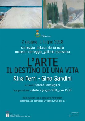 Inaugura sabato 2 giugno (nell’ambito della Fiera di San Quirino),alle ore 16,30, “Arte, destino di una vita”, la mostra di Rina Ferri e Gino Gandini, curata da Sandro Parmiggiani, allestita a Correggio, nella Galleria Espositiva del Museo Il Correggio, a Palazzo dei Principi.