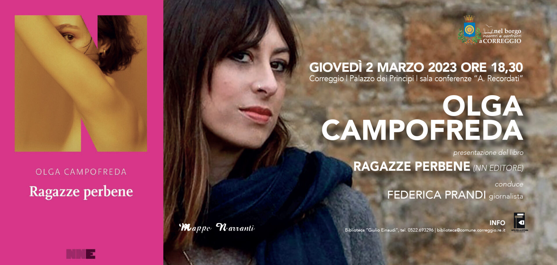 Giovedì 2 marzo, alle ore 18,30, è invece la volta di Olga Campofreda, intervistata dalla giornalista Federica Prandi, per la presentazione del suo “Ragazze perbene” (NN Editore).