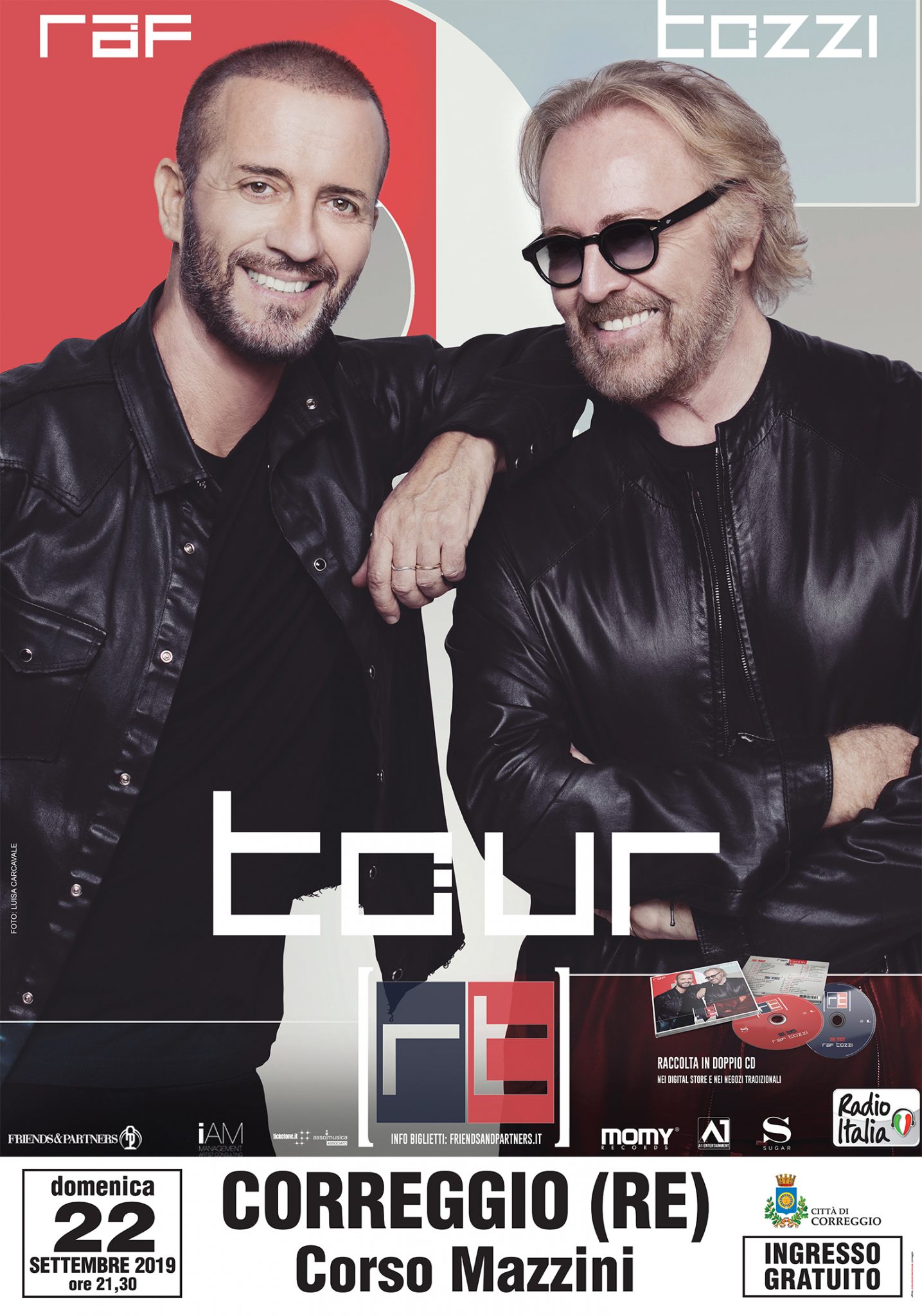 È iniziato tutto un paio di anni fa, quando Raf e Umberto Tozzi si sono ritrovati sullo stesso palco in occasione del concerto-evento di Tozzi “40 Anni Che Ti Amo”. I due artisti hanno poi deciso di continuare a collaborare, condividendo lo stesso spettacolo e dando vita al “RT Tour” che, domenica 22 settembre, farà tappa a Correggio – corso Mazzini, ore 21,30 – per un concerto gratuito, promosso dall’amministrazione comunale, che farà cantare e ballare il pubblico sulle note dei loro più grandi successi, capaci di conquistare intere generazioni, non solo in Italia. Raf e Umberto Tozzi proporranno una scaletta con più di 30 pezzi, brani indimenticabili e grandi successi, da “Gloria” a “Self Control”, da “Si può dare di più” a “Cosa resterà degli anni 80”, da “Infinito” a “Ti amo”, ma anche “Ti pretendo”, “Gli altri siamo noi”, “Il battito animale”, “Immensamente”, il loro nuovo brano “Come una danza” e molti altri, tra cui la hit “Gente di Mare”. Si tratta di due straordinari repertori, rivisitati per due voci e una vera e propria super band.