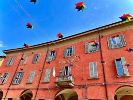 Il Palazzo del municipio è facilmente riconoscibile, guardando il palazzo dell’orologio, si trova sulla destra dei portici di corso Mazzini.