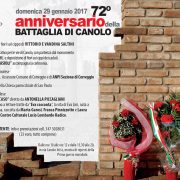 72° anniversario della Battaglia di Canolo: domenica 29 gennaio le celebrazioni. Domenica 29 gennaio ricorre il 72esimo anniversario della Battaglia di Canolo. Questo il programma delle celebrazioni:..