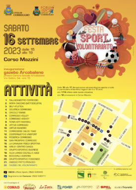 A partire dalle ore 15 e alle ore 19, infatti, per la prima volta il centro storico correggese ospiterà la V° edizione della Festa dello Sport che da quest’anno è anche festa del Volontariato, che si trasferisce in città dopo quattro edizioni al Salone delle Feste.