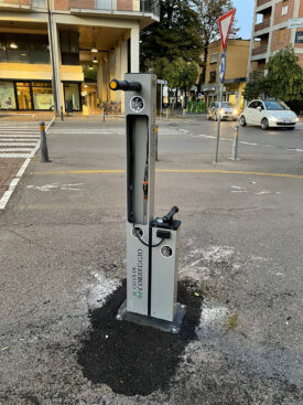In piazzale Carducci, installata una nuova colonnina per la manutenzione delle biciclette.