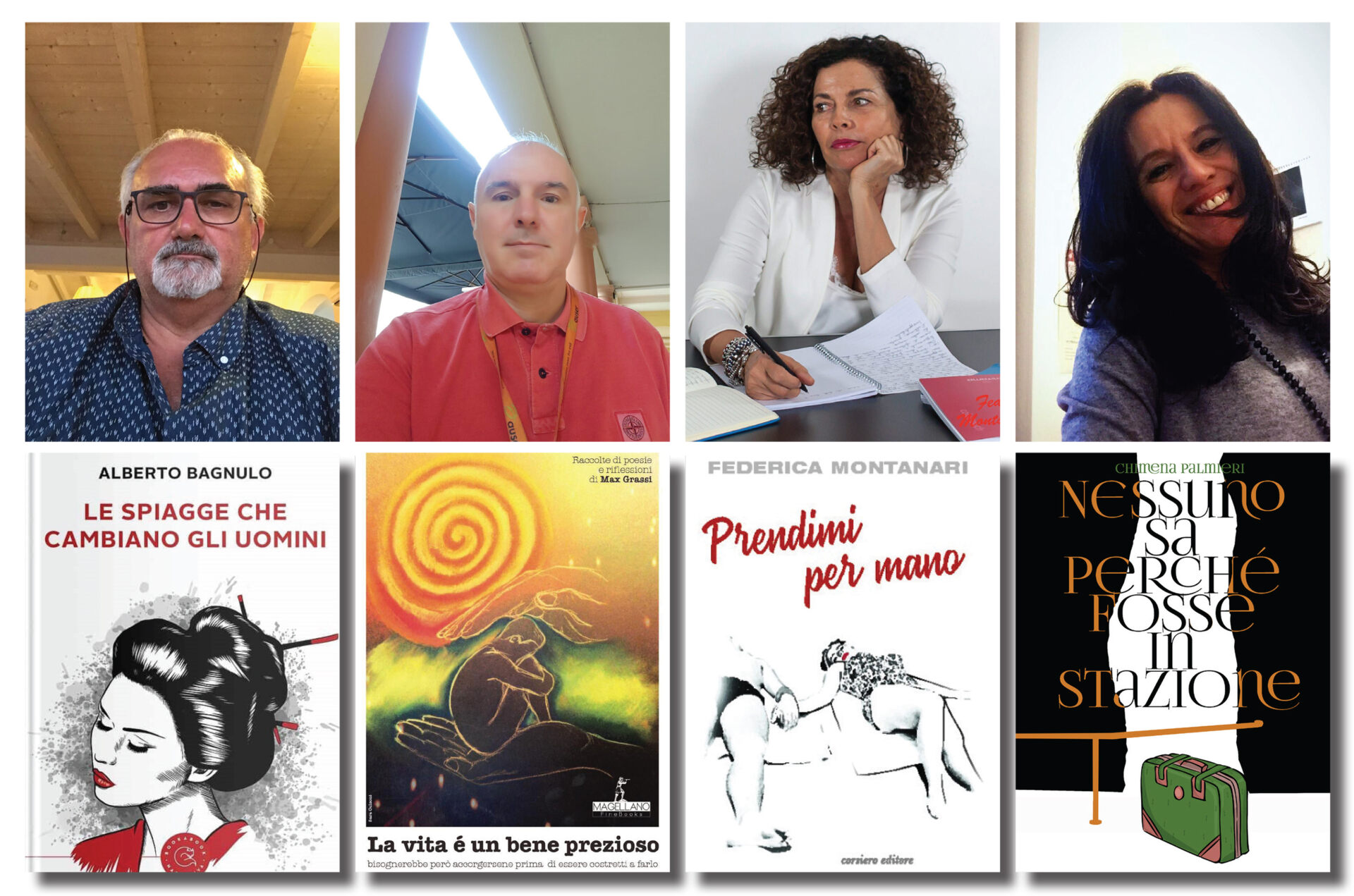 Protagonisti della serata sono Alberto Bagnulo che, intervistato da Paola Ligabue, presenta il suo “Le spiagge che cambiano gli uomini”, Max Grassi, che insieme a Eugenio Bini presenta “La vita è un bene prezioso”, Federica Montanari, intervistata da Davide Benetti per “Prendimi per mano”, e Chimena Palmieri, con il libro “Nessuno sa perché fosse in stazione”, intervistata da Roberto Paltrinieri.