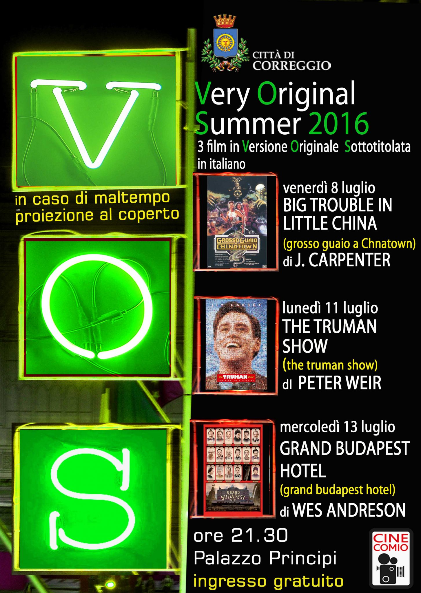 Si intitola “Very Original Summer” il ciclo di film in lingua originale e sottotitolati in italiano, promosso dal Comune di Correggio in collaborazione con l’associazione Cinecomio, che ritorna a Correggio dopo essersi affermato, negli ultimi anni, come uno degli appuntamenti più seguiti da spettatori e appassionati.