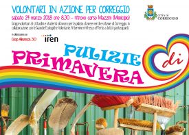 Sabato 24 marzo ritornano le “Pulizie di primavera” a Correggio. Dalle ore 8,30, con ritrovo in corso Mazzini di fronte al Municipio, gruppi volontari di cittadini e studenti si metteranno al lavoro, in collaborazione con le Guardie Ecologiche Volontarie, dedicandosi alla pulizia di aree verdi e urbane di Correggio precedentemente individuate dall’amministrazione comunale.